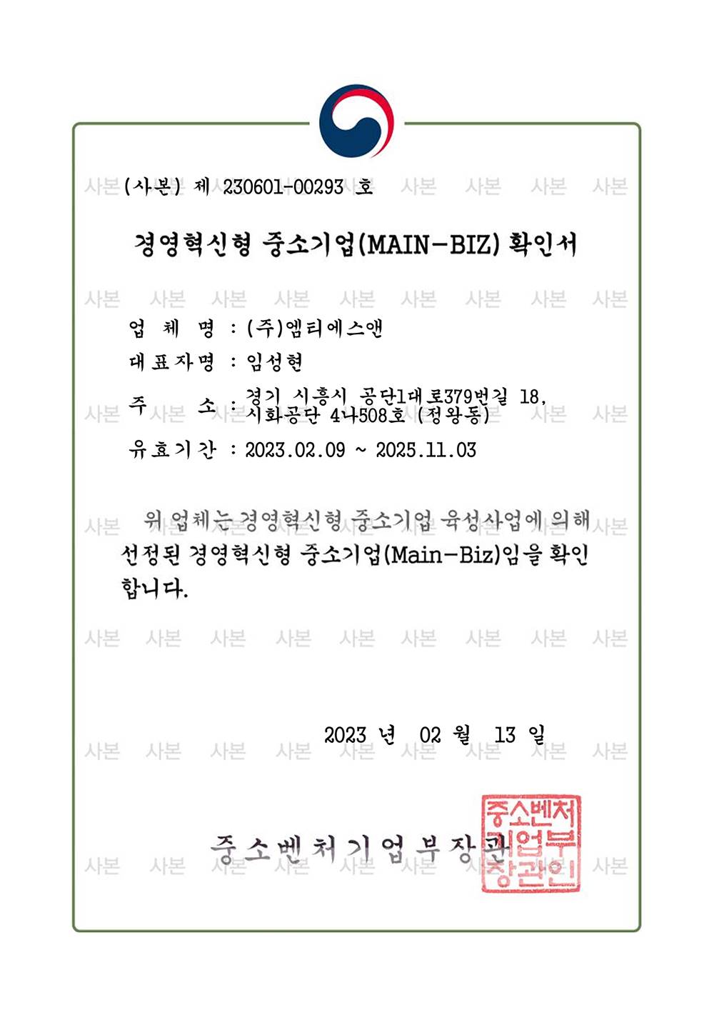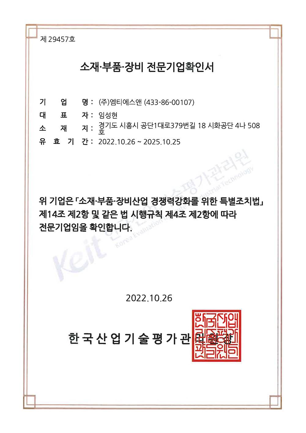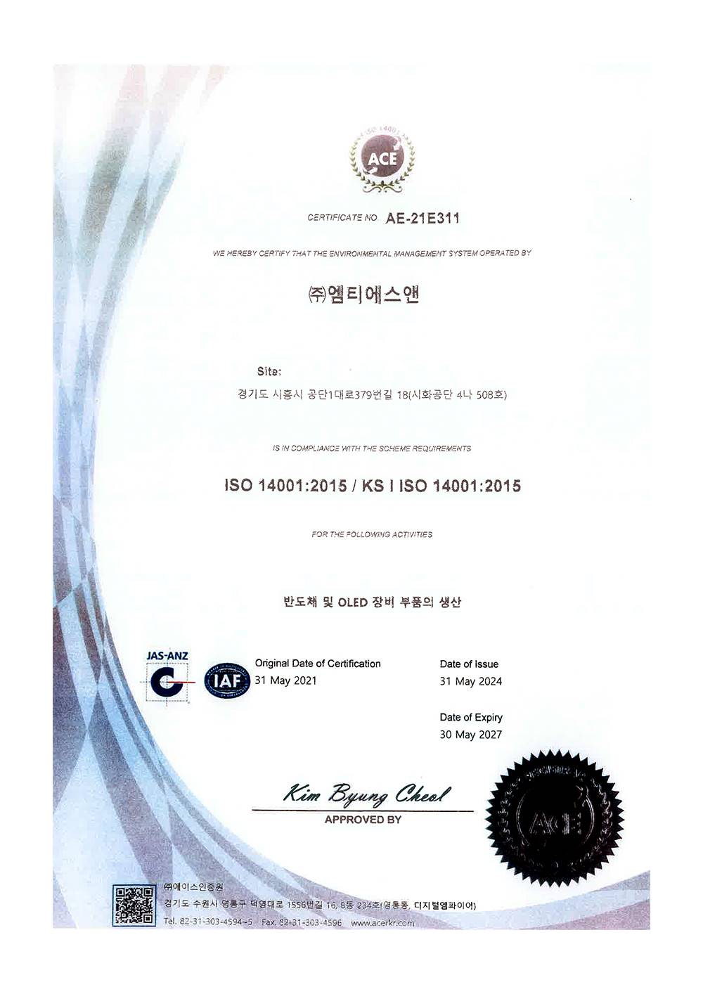 Maha, Technology, Solution 반도체 장비 및 부품의 완벽한 가동을 위한, 지속적인 성장과 도전을 이어갑니다. 인증현황 회사소개 인증현황 보유장비 제품소개 견적문의 인증현황 연구개발전담부서 인정서 소재 · 부품 · 장비 전문기업 확인서 소재 · 부품 · 장비전문기업 확인서 뿌리기업 확인서 벤처기업 확인서 경영혁신형 메인비즈 확인서 특허 (제 10-2672749 호) ISO 14001 인증서 ISO 9001 인증서