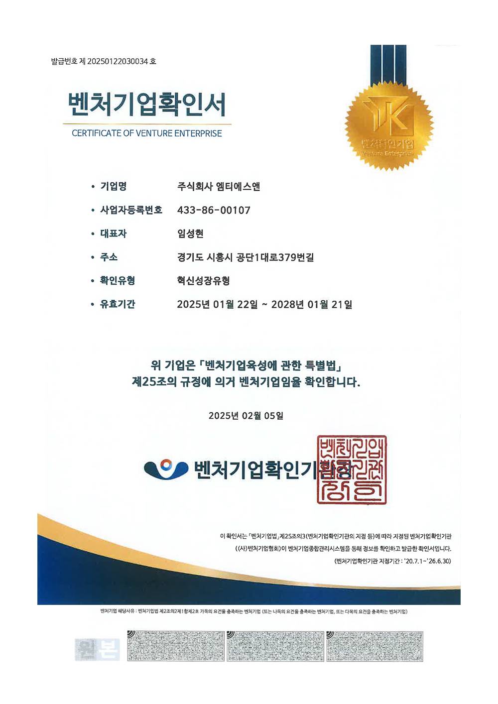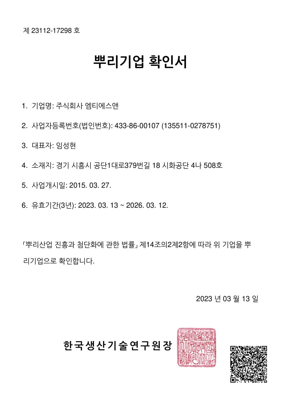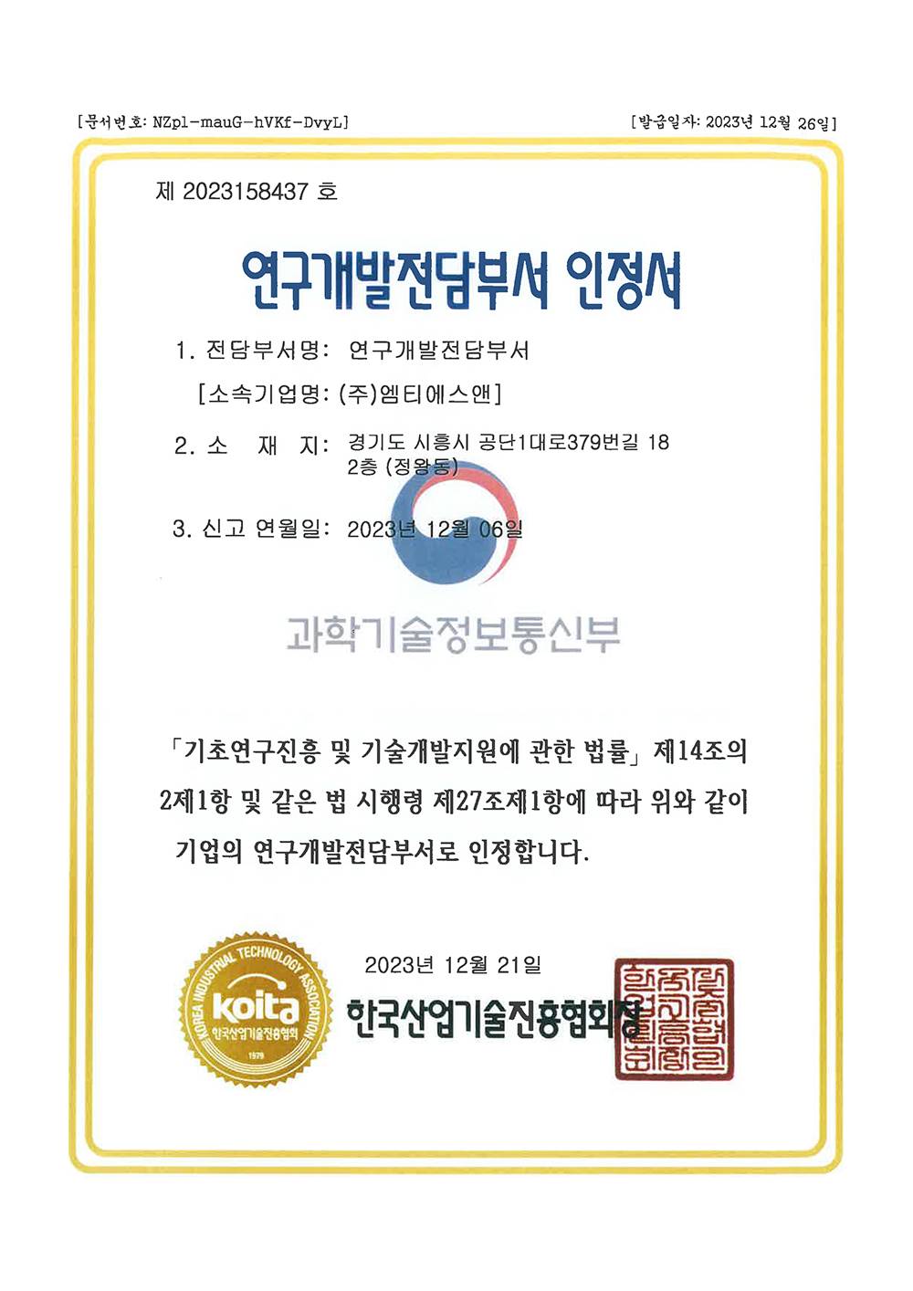 Maha, Technology, Solution 반도체 장비 및 부품의 완벽한 가동을 위한, 지속적인 성장과 도전을 이어갑니다. 인증현황 회사소개 인증현황 보유장비 제품소개 견적문의 인증현황 연구개발전담부서 인정서 소재 · 부품 · 장비 전문기업 확인서 소재 · 부품 · 장비전문기업 확인서 뿌리기업 확인서 벤처기업 확인서 경영혁신형 메인비즈 확인서 특허 (제 10-2672749 호) ISO 14001 인증서 ISO 9001 인증서